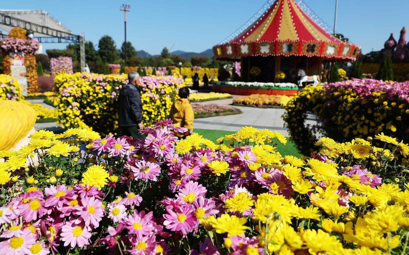 - 국화 전시: 천만 송이 국화가 피어나는 테마 정원. 핑크 뮬리, 코스모스 등 가을 꽃들도 함께 어우러져요.